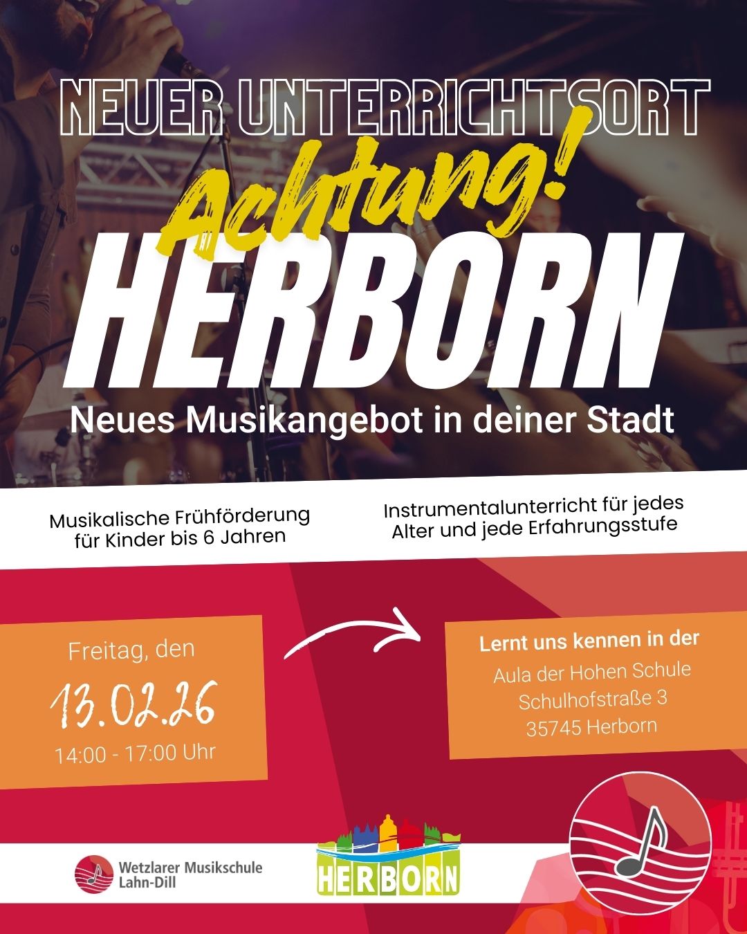 Am 13. Februar 2026 sind wir von 14:00 bis 17:00 Uhr zu Gast in der Aula der Hohen Schule in Herborn und stellen unsere Musikschule ...