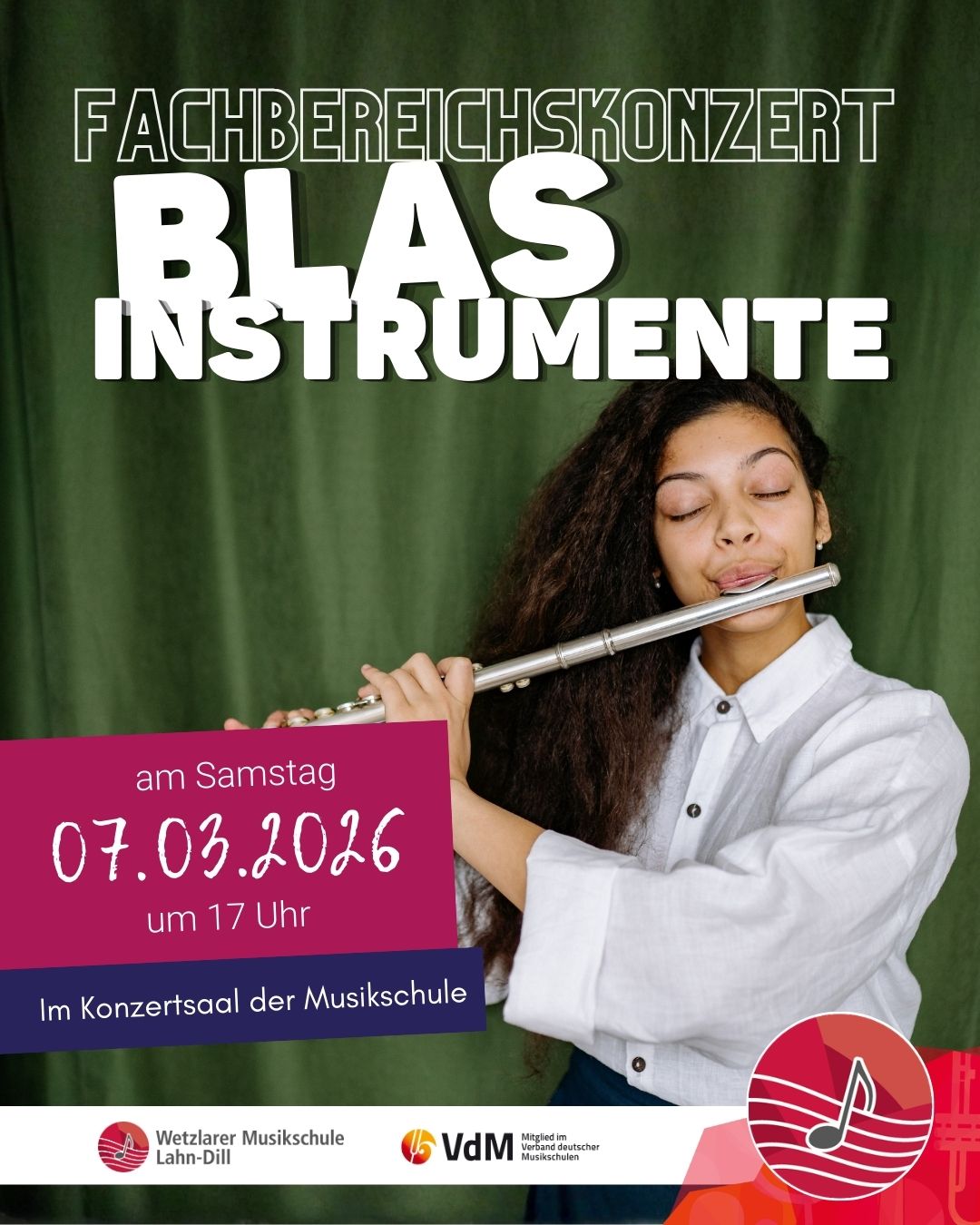 🎺 Fachbereichskonzert der Bläser 🎶 Die Bläserklassen der Wetzlarer Musikschule Lahn-Dill e.V. laden zum diesjährigen Fachbereichskonzert ein. Die Schülerinnen und Schüler präsentieren unter der Leitung ihrer Lehrkräfte ein abwechslungsreiches Programm ...