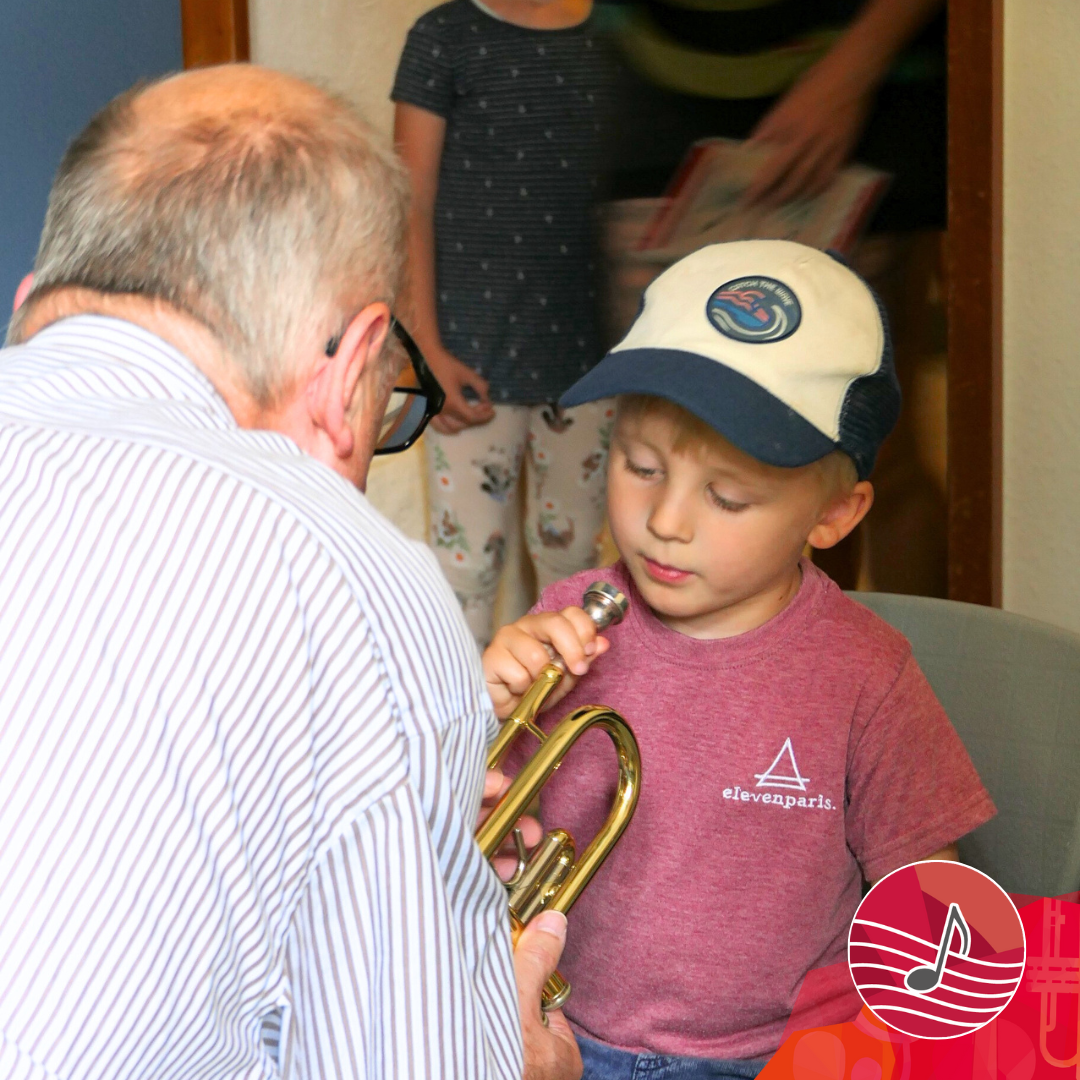Nach dem Mitmachprogramm für Kinder ging es ab 11:00 Uhr mit unserem Schnupperangebot weiter. Insgesamt wurden 24 (!) verschiedene Instrumente vorgestellt. Auf unserem Programm standen unter anderem Gitarre, Bass, Schlagzeug, Geige, Bratsche, Cello, Horn, Trompete, Posaune, Querflöte, Saxophon, Klarinette, Klavier, Harfe und vieles mehr.