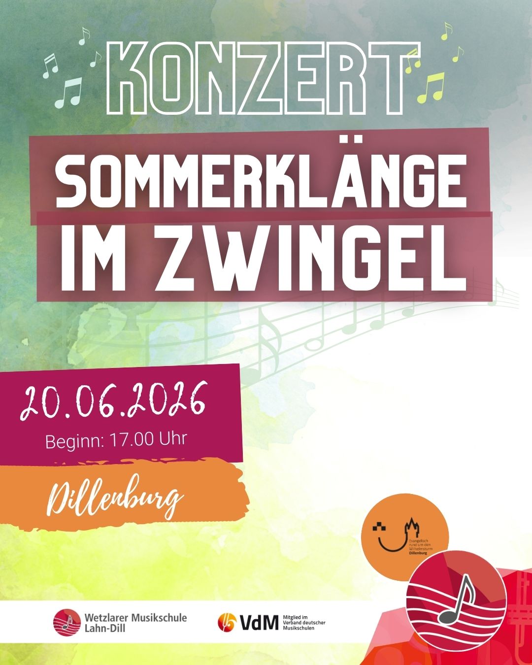 Evangelisches Gemeindehaus "Zwingel" Am Zwingel 3, Dillenburg, HessenEin Konzertabend in Kooperation mit der evangelischen Kirchengemeinde Dillenburg und der Wetzlarer Musikschule Lahn-Dill. Ort: Evangelisches Gemeindehaus “Zwingel” Am Zwingel 3 35638 Dillenburg Eintritt ist frei, wir freuen uns über eine Spende!